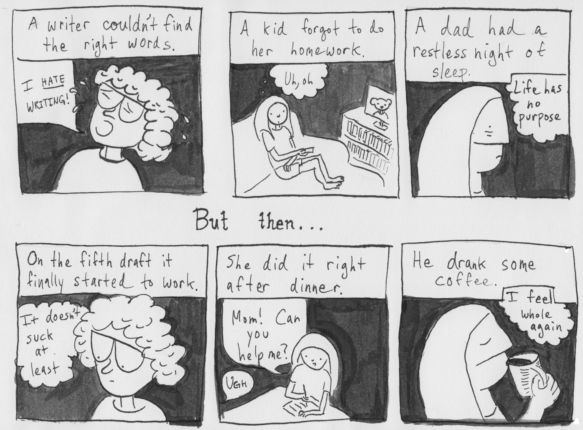 I did have a deadline this past week and it felt like more than the usual millstone around my neck. But if I were a little braver this comic would tackle more significant concerns, the kind that keep me up at night, especially lately.
