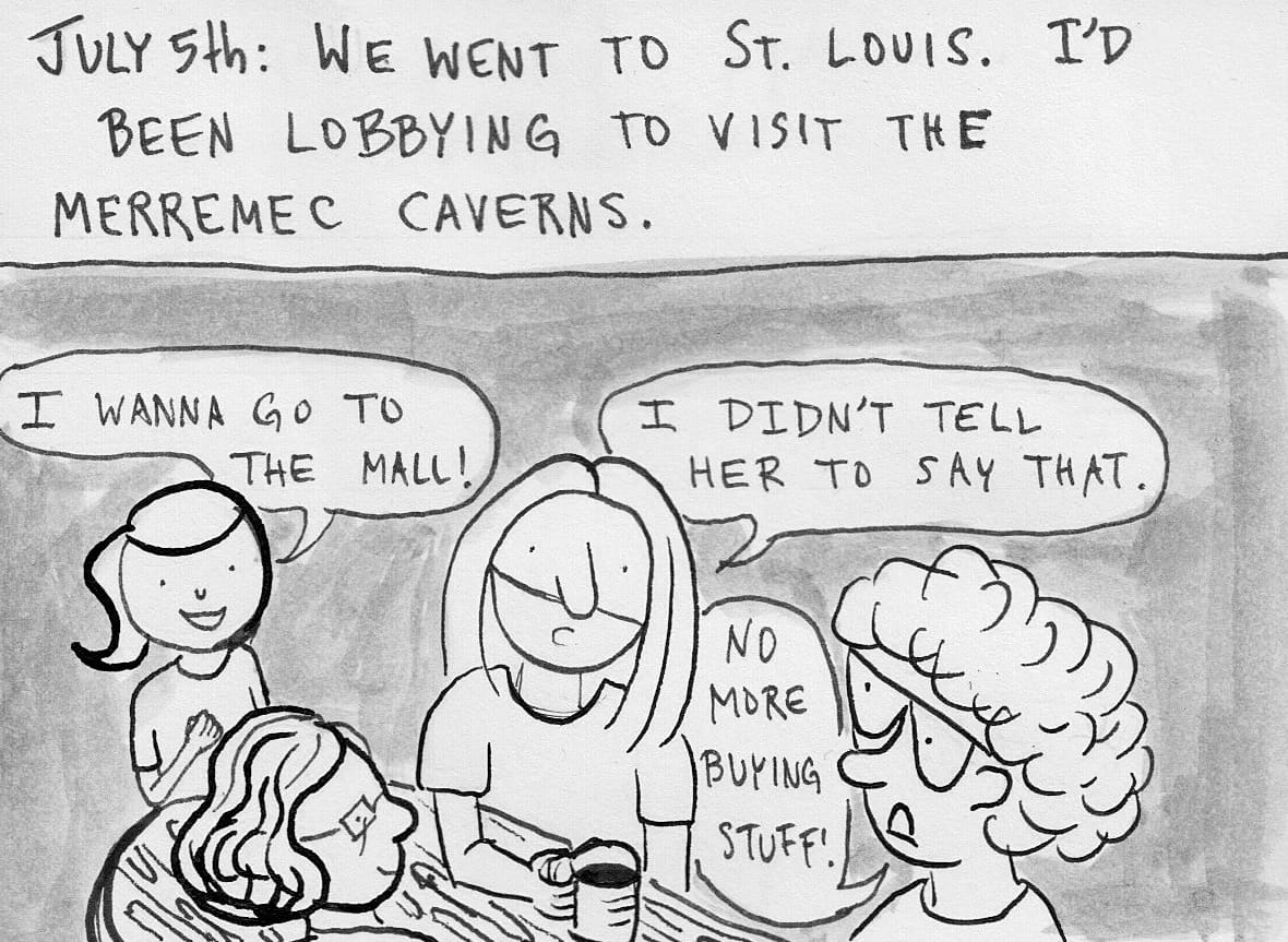 America's Cave, which is better known as Meramec Caverns, is a short drive from St. Louis, where we spent the 4th of July weekend. When we got to St. Louis it was approximately one bajillion degrees and humid as heck. So I lobbied hard for going to a cave. A cave is never more than 50 or 60 degrees. I was definitely the most excited person in our family to go to a cave.