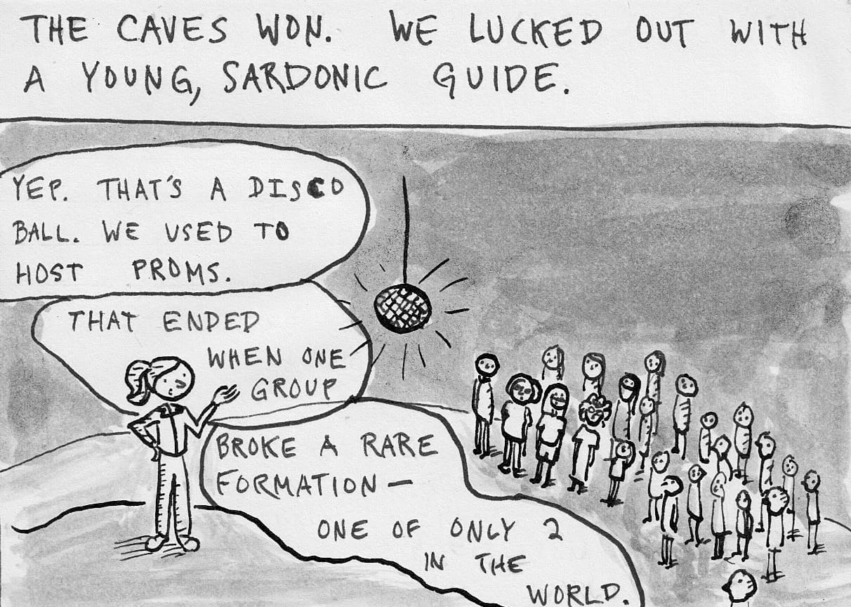 Our guide was a young, matter-of-fact woman who told us many interesting facts about the cave as well as how to remember the difference between a stalactite and a stalagmite (a stalactite stays "tight" to the ceiling).