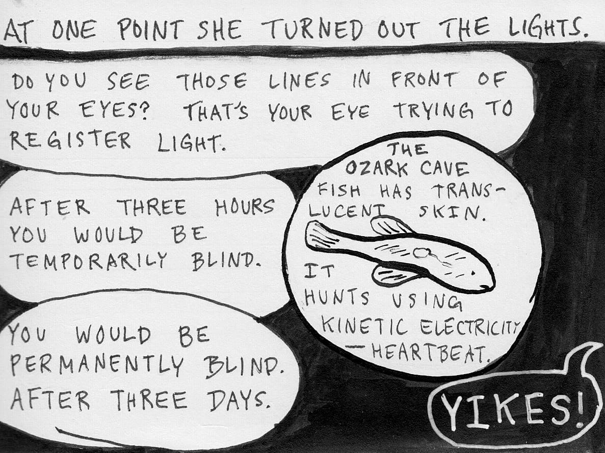 Special thanks to Marnie Galloway, an extraordinary artist-writer, from whom I got the idea to visit Meramec Caverns in the first place.