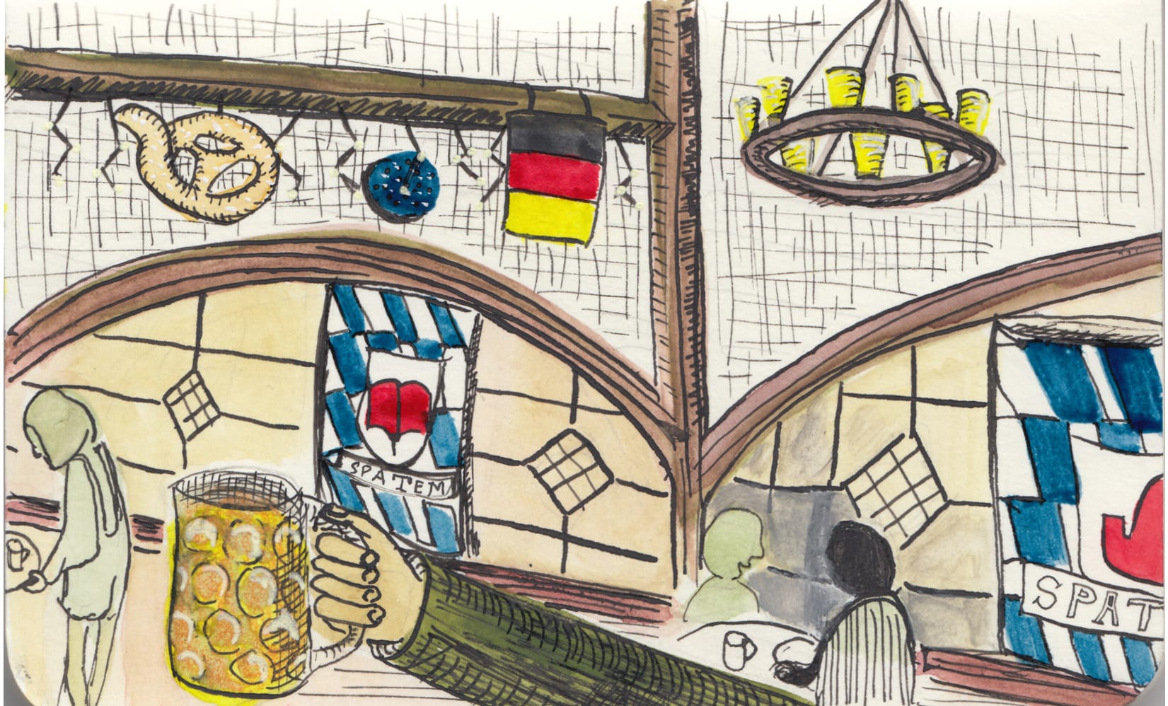 The polka-band leader also trained everyone in the restaurant to yell out "Oi Oi Oi" whenever she chanted "Zicke Zacke Zicke Zacke." I have been to Germany, specifically Berlin, a couple of times, and never once have I heard anyone do this in a bar or restaurant or beer garden. The only other time I heard this "Zicke Zacke" was at a German beerhall in Epcot Center in Disney World in February. Inside the beerhall it was kind of a spring vibe, with a twilit sky. (Outside, back in Florida, it was raining cats and dogs.) I found the whole thing to be quite effective. I enjoyed the singing. Maybe this "Zicke Zacke" thing is more typical of towns or cities aside from Berlin, who knows. Or maybe it only happens during Oktoberfest, which I have never been to (in Germany). Dear German friends, please enlighten me: do Germans actually sing, "Zicke Zacke Zicke Zacke, Oi, Oi, Oi"?