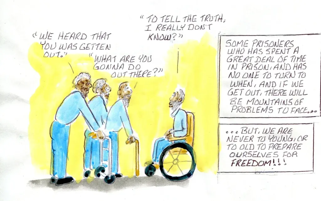 - I also went to the opening of Walls Turned Sideways, a new gallery/community space for the Prison + Neighborhood Arts/Education Project (aka PNAP). The exhibition featured the work of Arkee Cheney, who spent 31 years in prison and drew comics for "Stateville Speaks," a newsletter published by and for incarcerated people.