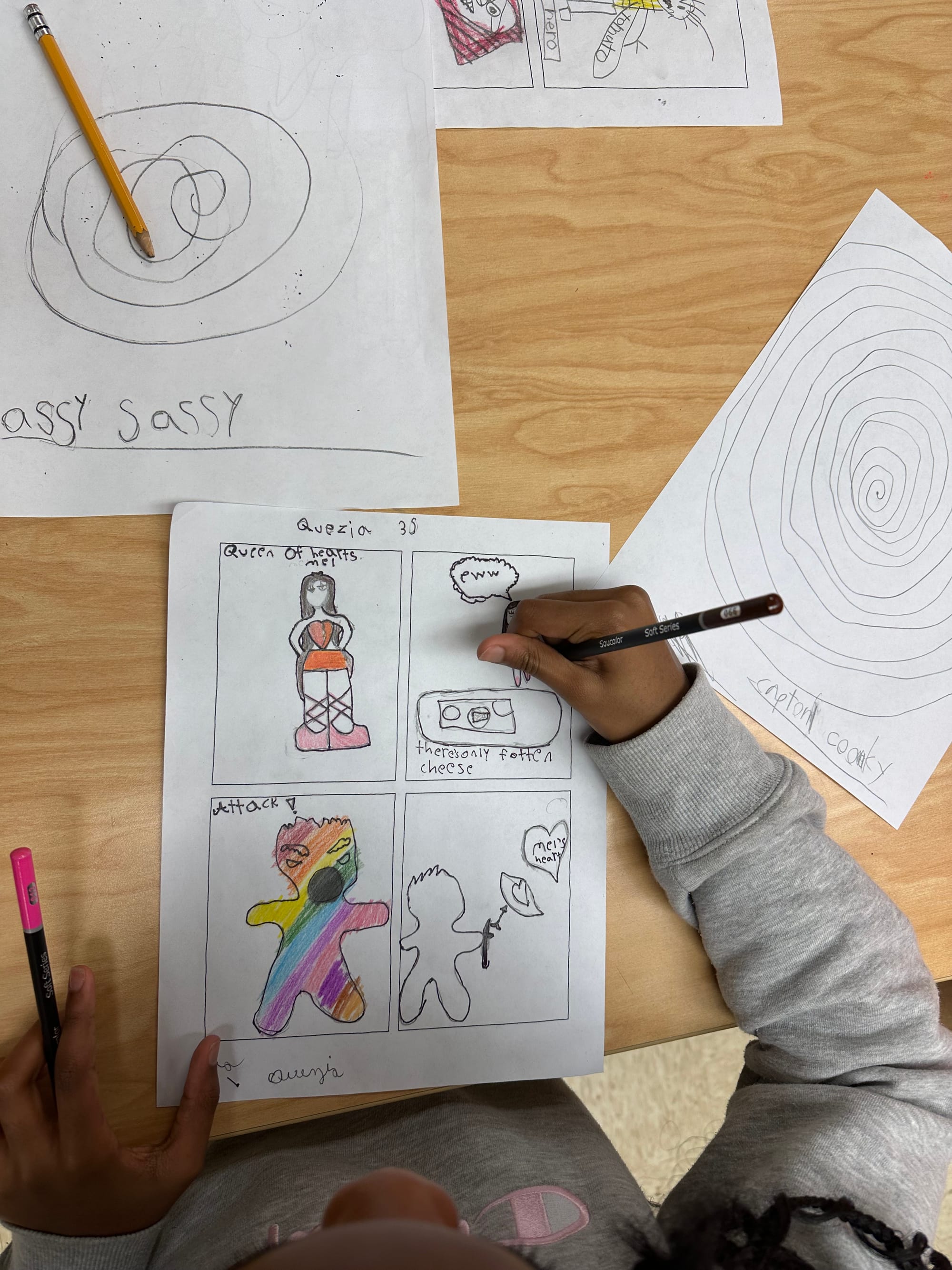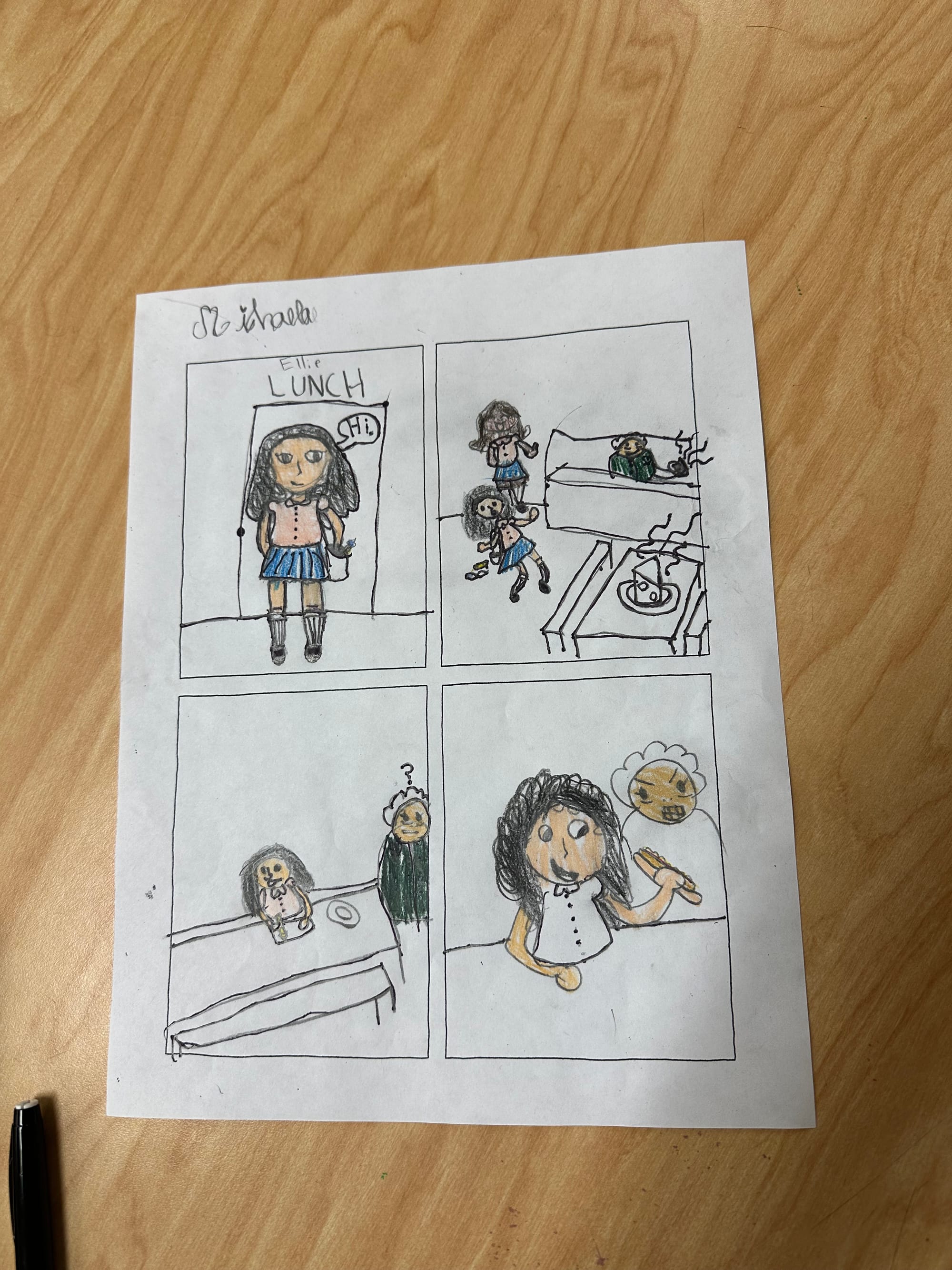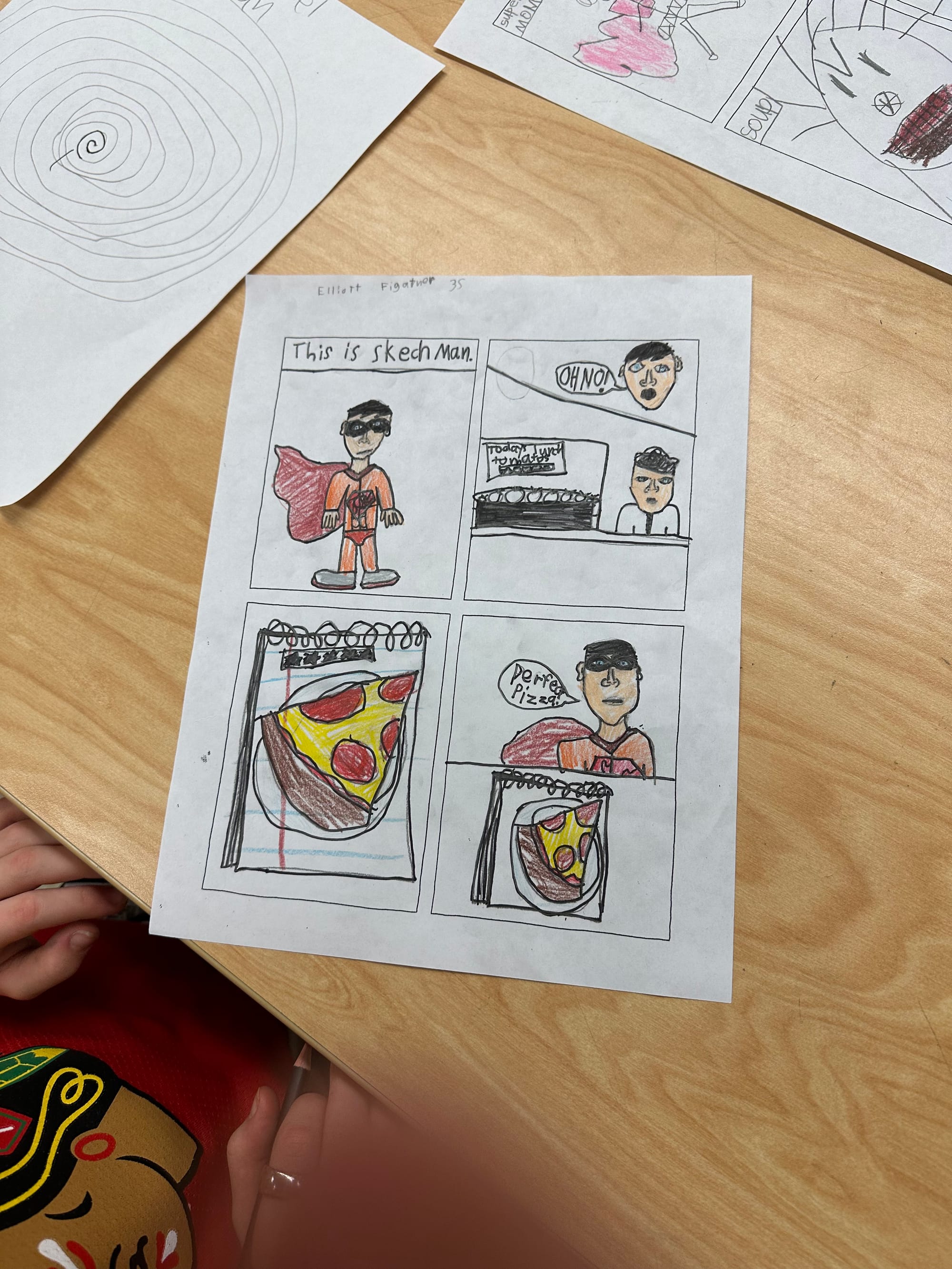 - For the past two Fridays I led comic workshops in Michaela's art class. It was such a pleasure working with third graders—they are so sharp! I asked them to come up with a superhero who had to overcome the challenge of getting served their least favorite food at lunchtime. (Tomatoes were universally reviled.) The results were all so great. Look at that Ketchup Man!!!!!!!! Oh my gawd. I really can't believe how good they all were.