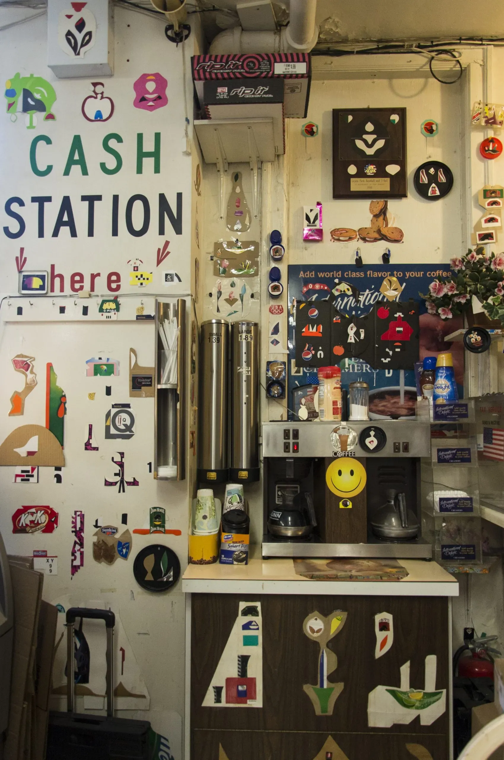 Over the weekend we went to the Barely Fair, which is just like a conventional art fair, except that the galleries show work in booths that are only 20 x 20 inches. Dollhouse size in other words, and perfect for kids, though we were informed that the fair is definitely not meant for kids. Harumph. Anyway, the standout was a (regular person size) pop-up exhibition of Thomas Kong's collages, arranged in a space set up to resemble a convenience store. Kong, who was 73 when he died last year, owned Kim's Corner Food, which he decorated with his jaunty compositions. Soon after being embraced by the art community, Kong collaborated with several local artists and opened a project space in his store's stock room. My guess is that we will soon be seeing a lot more of Kong's work—or at least I hope we will.