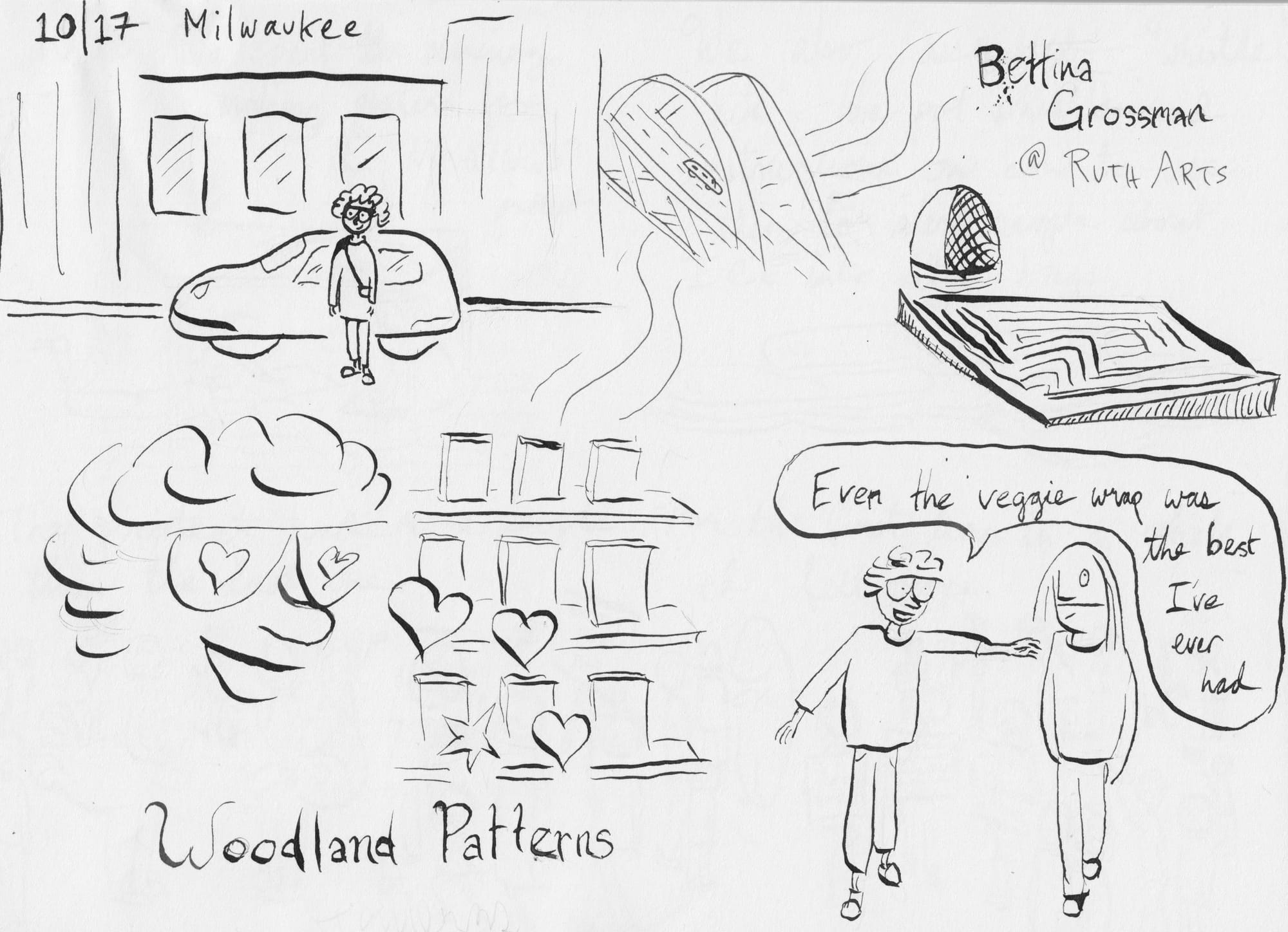 - I was in Milwaukee two weeks ago and even though I was only there for a few hours it was long enough to remind me that A) Milwaukee is just the coolest and B) I have to return for a longer visit. I went to see an exhibition of work by Bettina Grossman, who died at the age of 94 in 2021 and was a resident in Manhattan's storied Chelsea Hotel. The show, at Ruth Arts, is one that you can spend hours in, if you are like me, that is, and love seeing a wide variety of work by a woman who tirelessly sought and found patterns in the world.