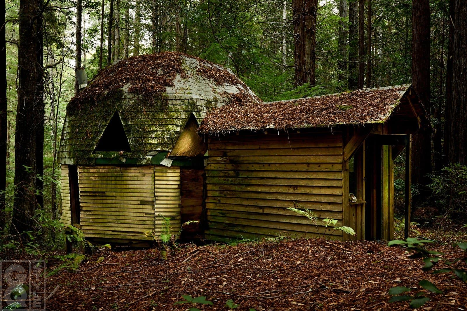 Decaying architecture among the redwoods (photos by Michael Schmelling)