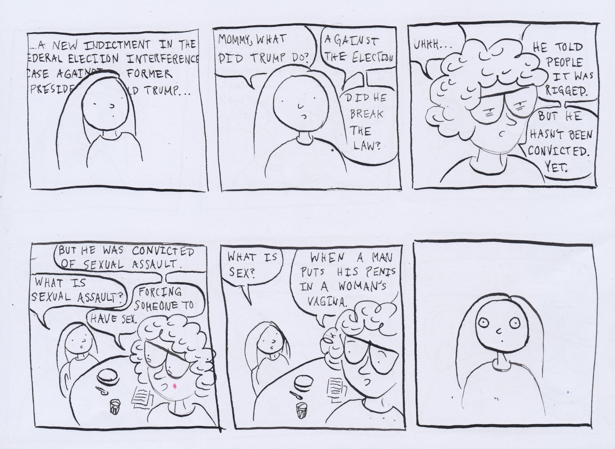 WE WATCHED THE debate along with everyone else in the United States and Michaela kept commenting on Trump's overuse of tanning product: "He's just so . . . orange." Kamala has the nine-year-old vote locked simply for not looking like a lumpy pile of orange-juice pulp. Needless to say Michaela was quite pleased to learn about Taylor Swift's endorsement the following morning.