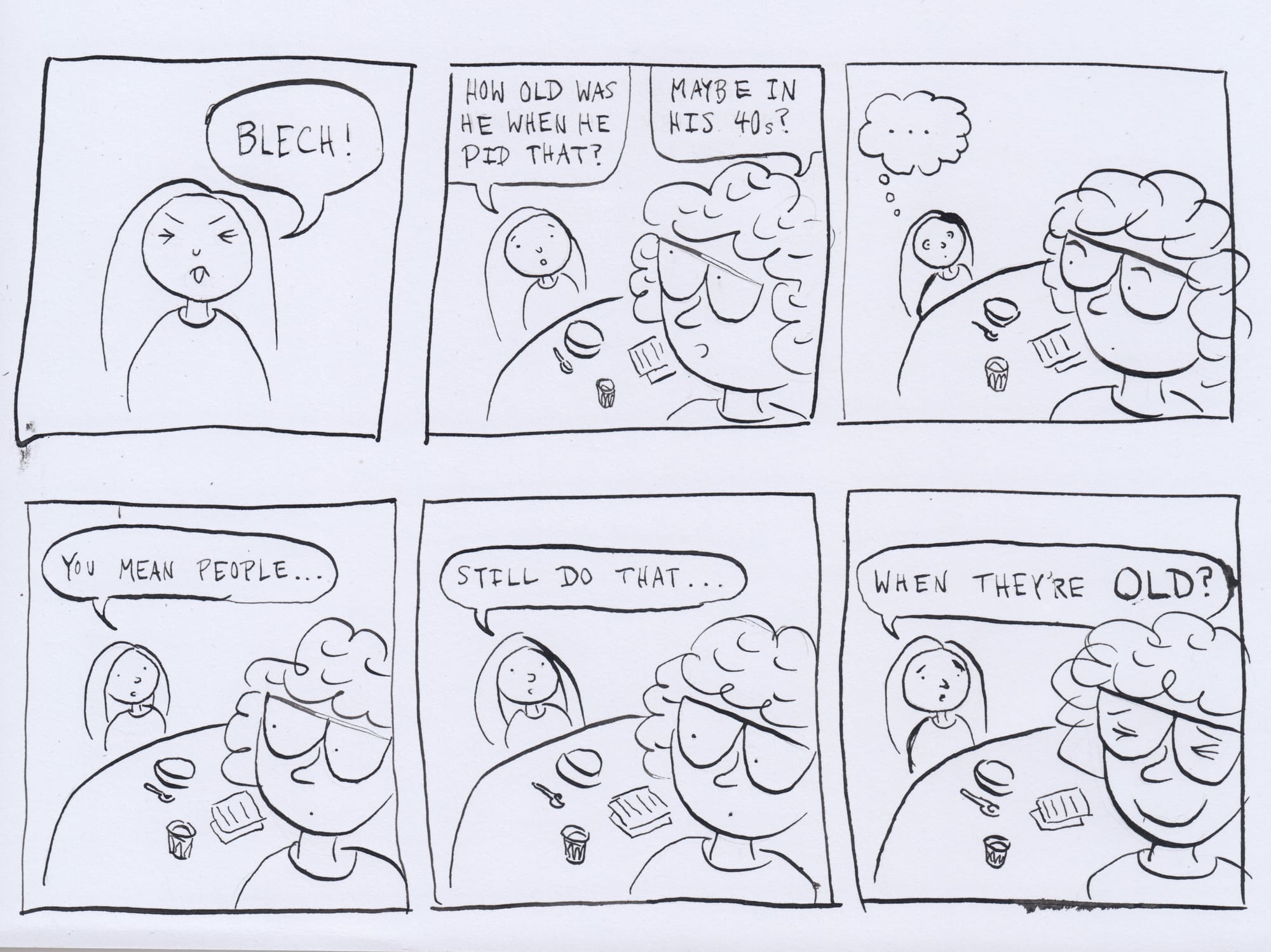 It felt good to make a note of this moment and I look forward to sharing it with Michaela in the future. (I feel like my drawings of myself in the first panels look a bit Doonesbury-esque, which is definitely not something I was aiming for.)