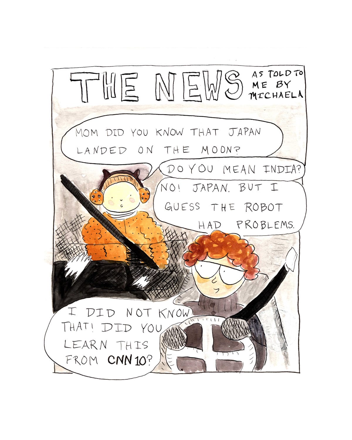 But first, the news. Michaela watches CNN-10 at her school, and I love it when she recounts what she's learned, especially when it is literally news to me.